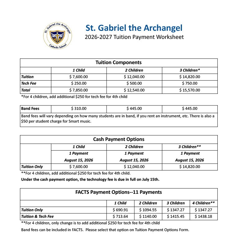 St. Gabriel has moved to FACTS for payments, please click HERE to read the document for information. Check out our FACTS Tuition page for the link to apply to FACTS.