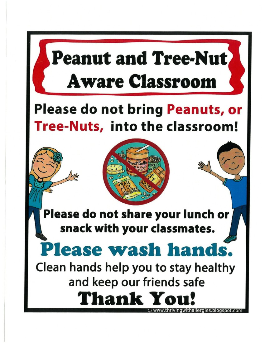 Parents please refer to our "Nut Aware Policy" and remind your students that classroom snacks may not contain peanuts or tree nuts. Cafeteria lunch items are allowed to contain peanuts or tree nuts if separately seated from the allergen free table. If you have any questions or concerns, please contact Nurse Stemmermann via email. mstemmermann@stgab.org